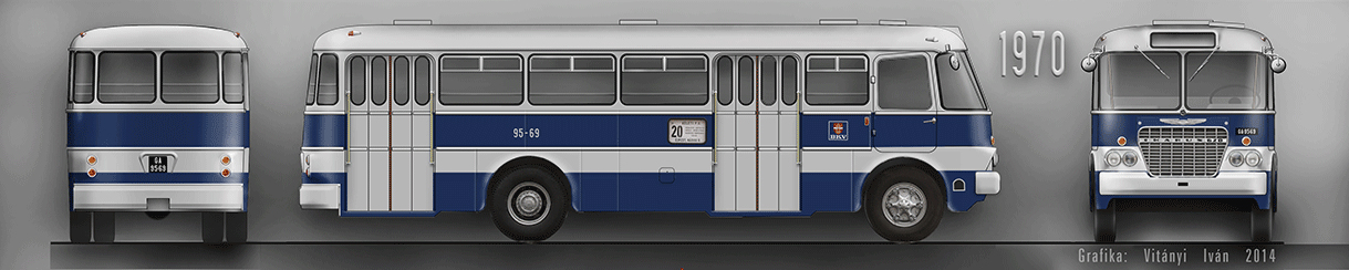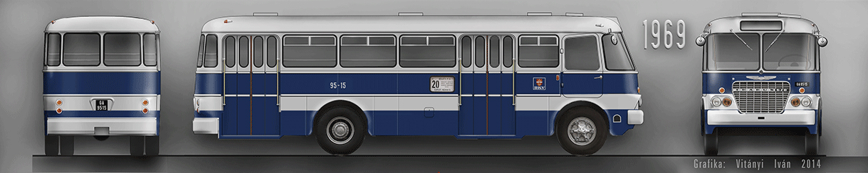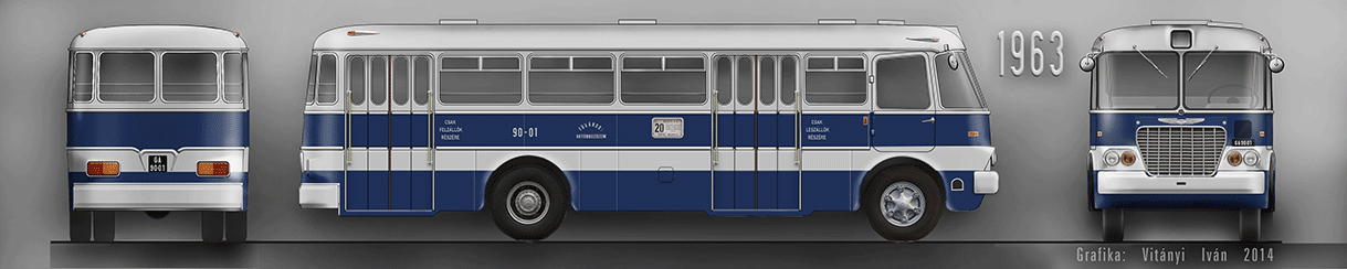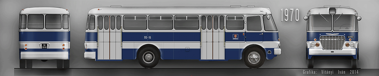magasságában. Ezt a dekorációs elemet egészen az IK 260/280-as sorozat megjelenéséig megtartották a budapesti autóbuszokon és főjavítások során régi, eredetileg teljesen kék kocsikon is alkalmazták." |